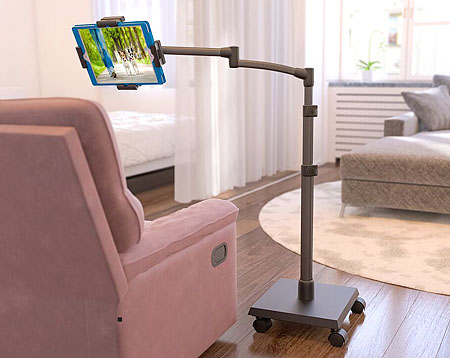 This lightweight tablet floor stand, will not tip over very easily unless unusual force is applied. The frame is specially engineered to reduce bouncing and swaying while in use.