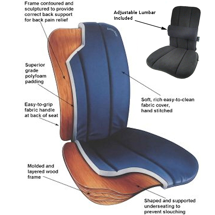 ... Learn moreBetterBack Lumbar Support Seat: A portable and foldable back support that is ergonomically designed to support proper neutral spine alignment and to promote correct posture while sitting in different positions. The Betterback Support adds great orthopedic stability to the pelvis providing more integrity to a weak back.